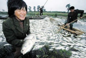 一位劉姓村民說,水庫近一個月來已發生兩次死魚事件,以前每天能捕撈100多元的魚,但“我們現在不敢下水,下去就全身發癢”。