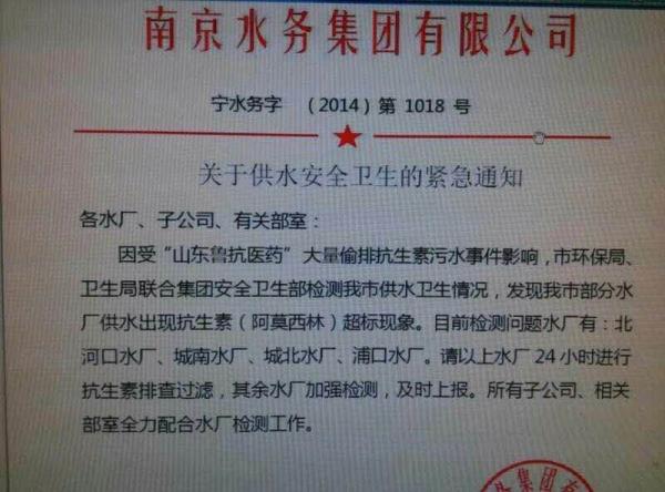此外,昨天還有一份來自南京水務集團的《關于供水安全衛生的緊急通知》的“紅頭文件”在網上流傳,這份文件中寫到:經檢測,發現我市部分水廠供水出現抗生素(阿莫西林)超標現象。隨后,南京水務集團緊急辟謠:經核實,該文件為造假,并已依法報案。
